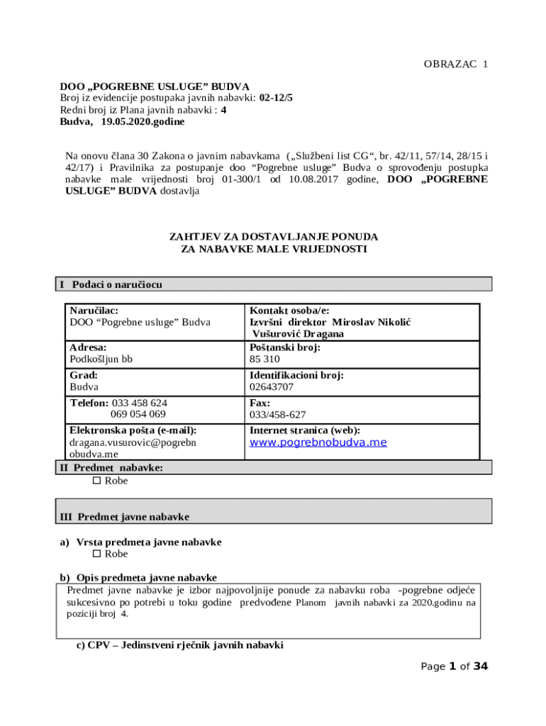 What is Na onovu lana 30 Zakona o javnim nabavkama(Slubeni list CG, br Form?