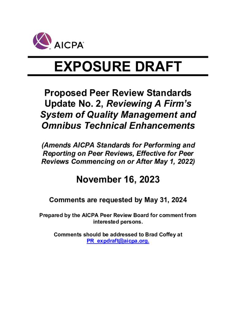 EXPOSURE DRAFT Proposed Peer Review Standards Update No. 2, Reviewing A Firms System of Quality Management and Omnibus Technical Enhancements (Amends AICPA Standards for Performing and Reporting on