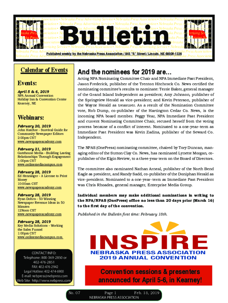 Bulletin Nebraska Press Association Nebraska Press Advertising Service Nebraska Press Association Nebraska Press Advertising Service