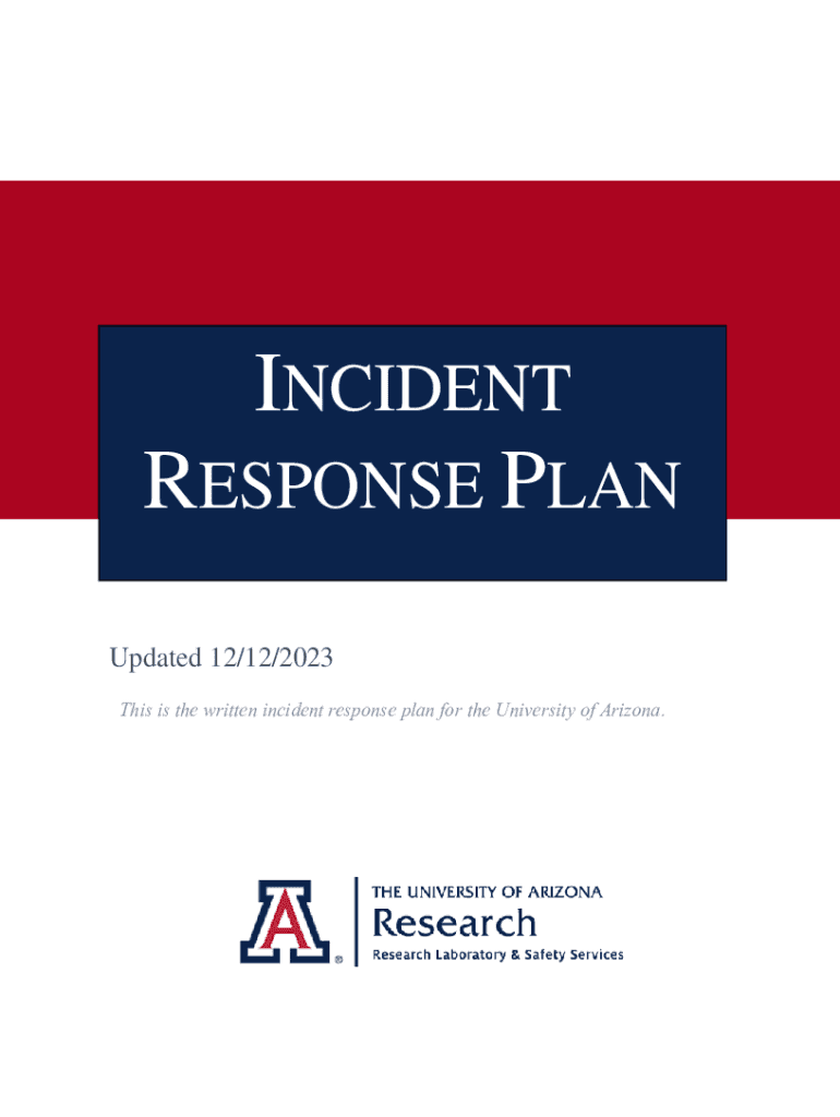 THE UNIVERSITY OF ARIZONA Incident Response PlINCIDENT RESPONSE PLAN Updated 12/12/2023 This is the written incident response plan for the University of Arizona.TABLE OF CONTENTS Personnel Roles ...............................................................................................................................