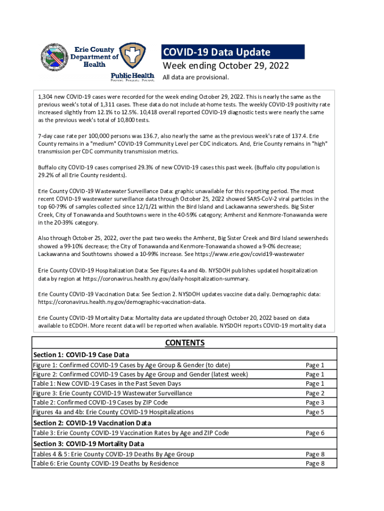 COVID19 Data UpdateWeek ending October 29, 2022All data are provisional.1,304 new COVID19 cases were recorded for the week ending October 29, 2022. This is nearly the same as the previous week\'s
