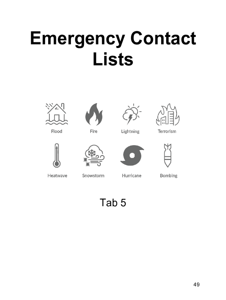 Emergency Contact ListsTab 549This page purposefully left blank.50Neighbor Contact List Updated ___/___/___ PersonAddressCell PhoneHome PhoneWork PhoneEmail1.2.3.4.5.6.7.Source: June Isaacson Kailes,