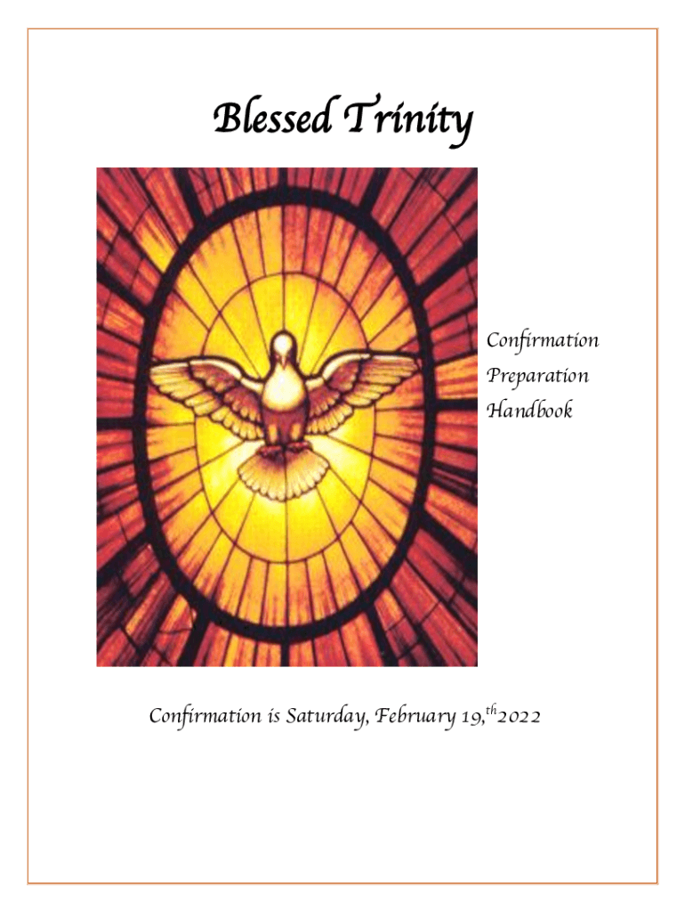 Blessed TrinityConfirmation Preparation HandbookConfirmation is Saturday, February 19,th2022CONFIRMATION GUIDE CONTENTS 1. 2. 3. 4. 5. 6. 7. 8.LETTER TO CONFIRMATION CANDIDATES REQUIREMENTS FOR CONFIRMATION