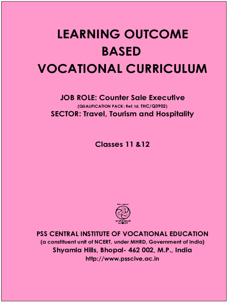 LEARNING OUTCOME BASED VOCATIONAL CURRICULUM JOB ROLE: Counter Sale Executive (QUALIFICATION PACK: Ref. Id. THC/Q3902)SECTOR: Travel, Tourism and HospitalityClasses 11 &12PSS CENTRAL INSTITUTE OF