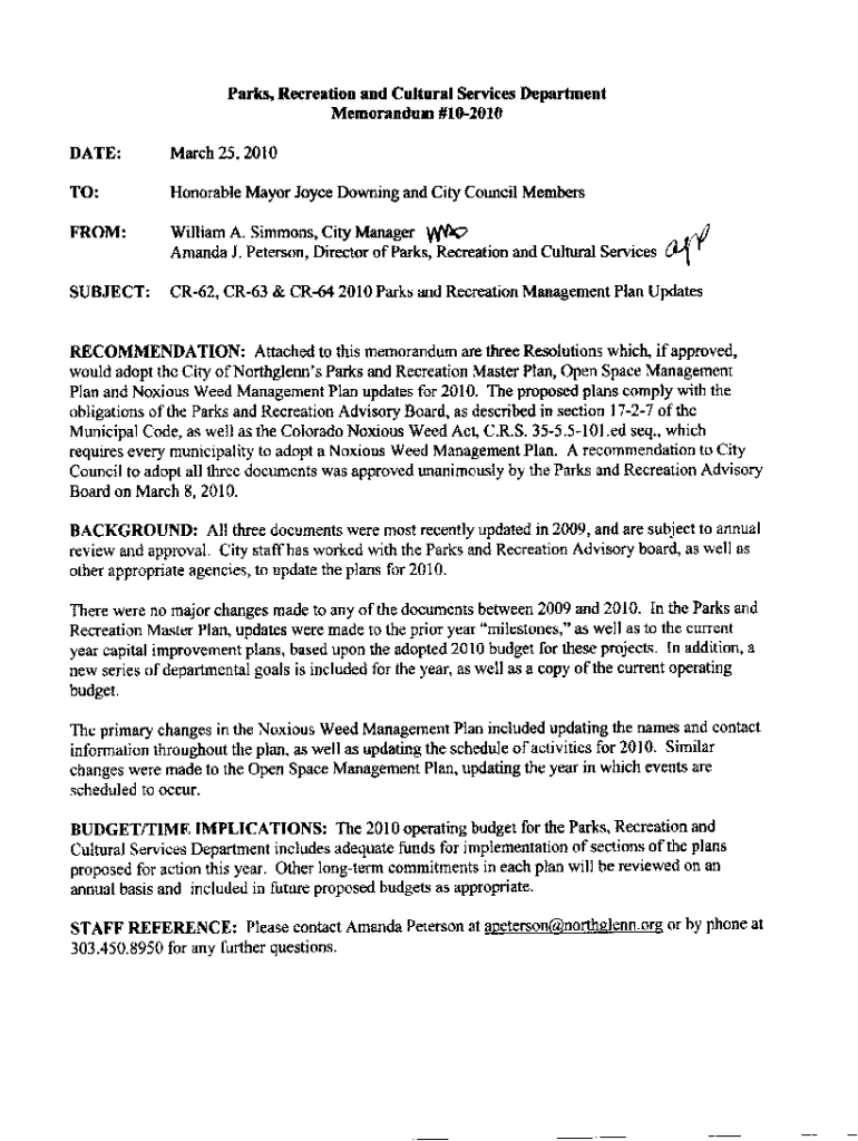 Series of 2010A RESOLUTION ADOPTING THE 2010 REVISED NOXIOUS WEED MANAGEMENT