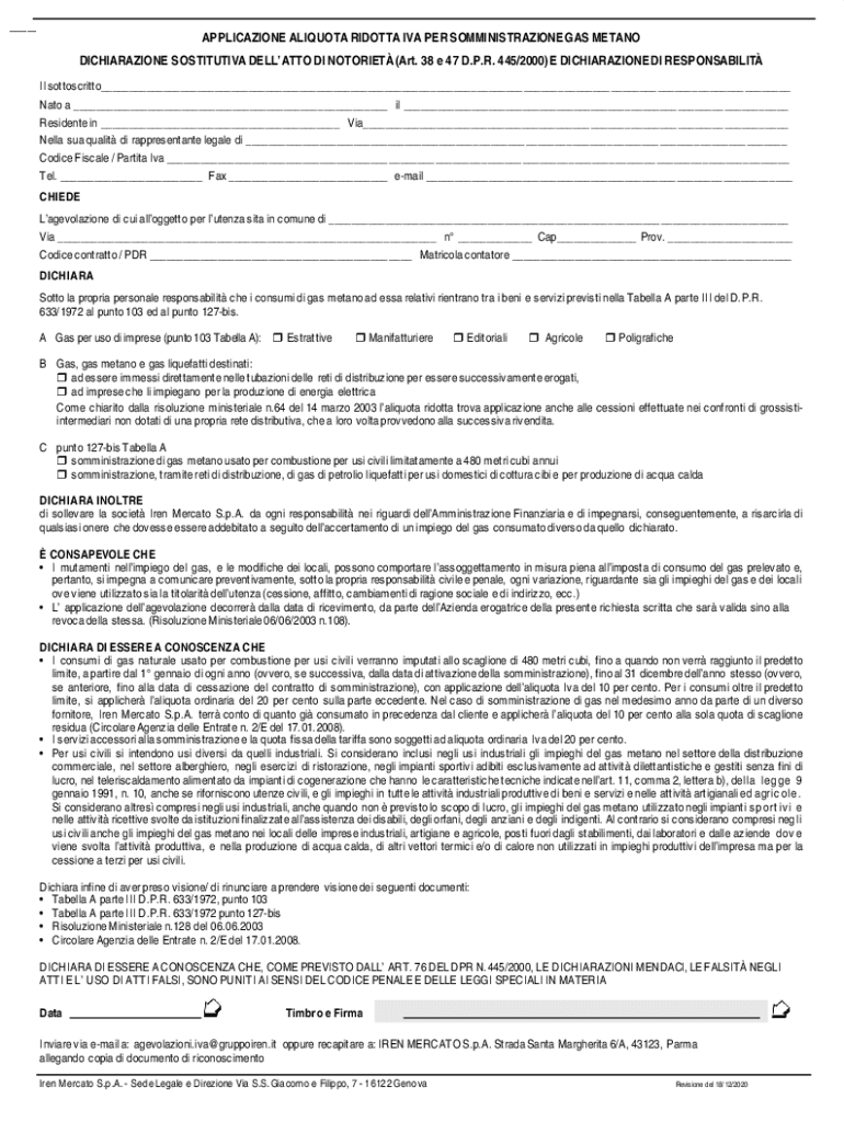 Ottieni il gratuito Applicazione di Aliquota IVA ridotta - Gas.pdf
