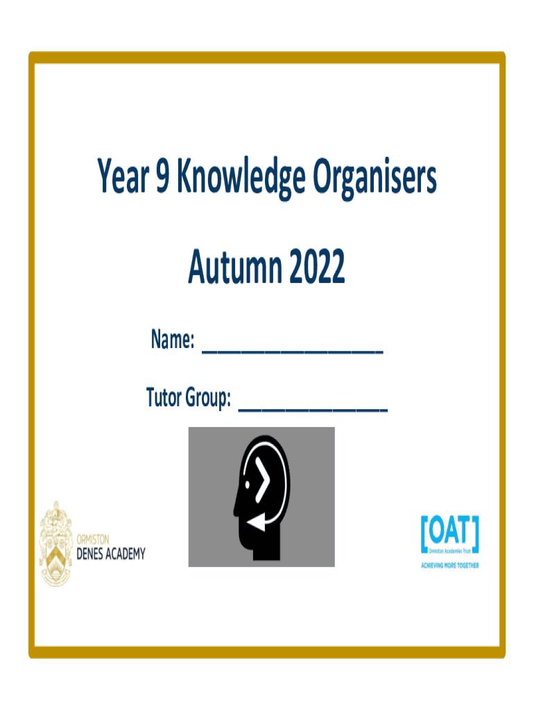 Year 9 Knowledge Organisers Autumn 2022 Name: ___ Tutor Group: ___Your Knowledge Organiser What are Knowledge Organisers? A Knowledge Organiser is a set of key facts or information that students need