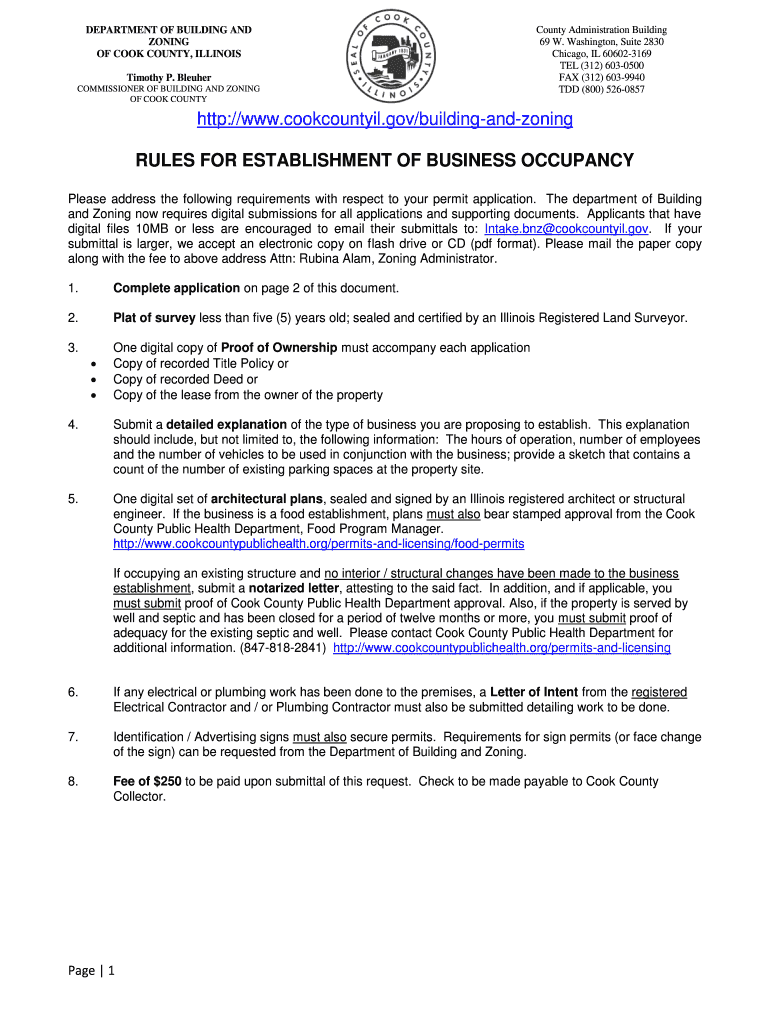 DEPARTMENT OF BUILDING AND ZONING OF COOK COUNTY, ILLINOIS Timothy P. Beecher COMMISSIONER OF BUILDING AND ZONING OF COOK COUNTY Administration Building 69 W. Washington, Suite 2830 Chicago, IL 60602-3169