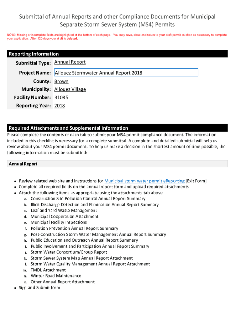 Submittal of Annual Reports and other Compliance Documents for Municipal Separate Storm Sewer System (MS4) Permits NOTE: Missing or incomplete fields are highlighted at the bottom of each page. You
