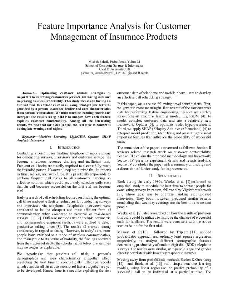 Get the free Feature Importance Analysis for Customer Management of ... - orca cardiff ac