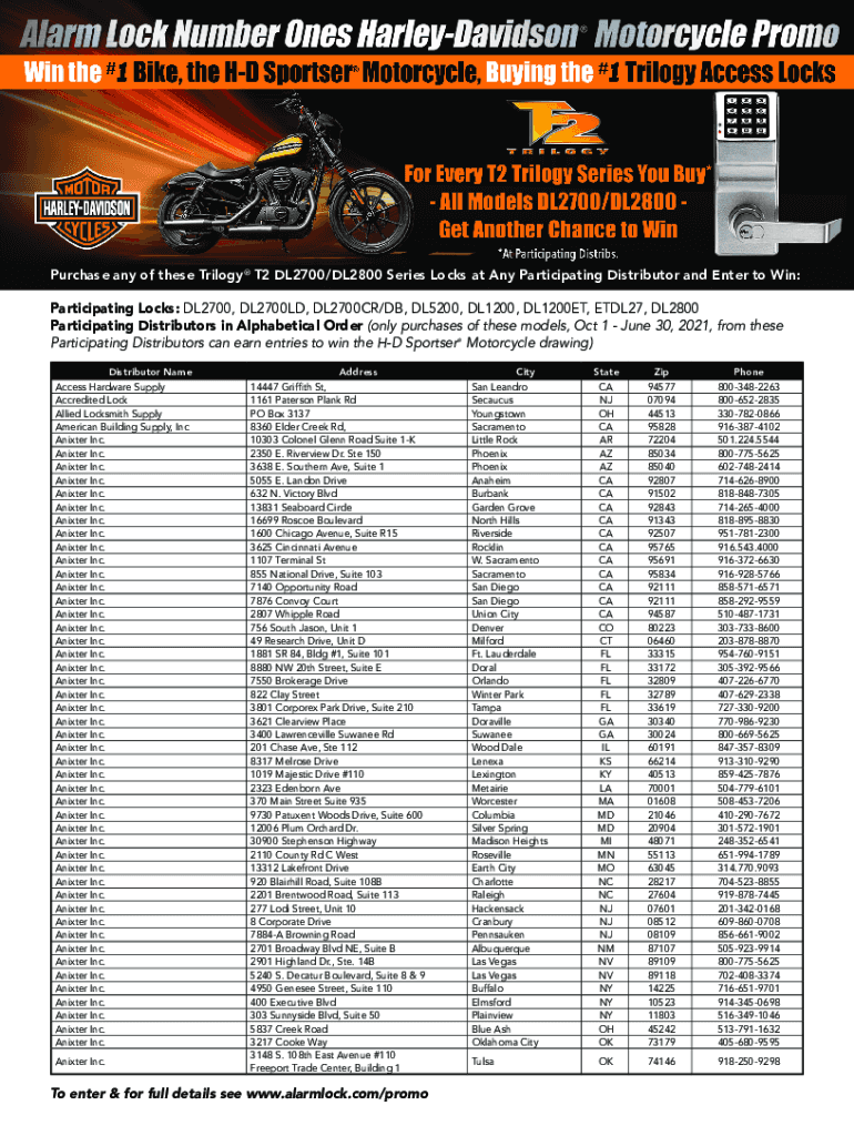 Purchase any of these Trilogy T2 DL2700/DL2800 Series Locks at Any Participating Distributor and Enter to Win: Participating Locks: DL2700, DL2700LD, DL2700CR/DB, DL5200, DL1200, DL1200ET, ETDL27,