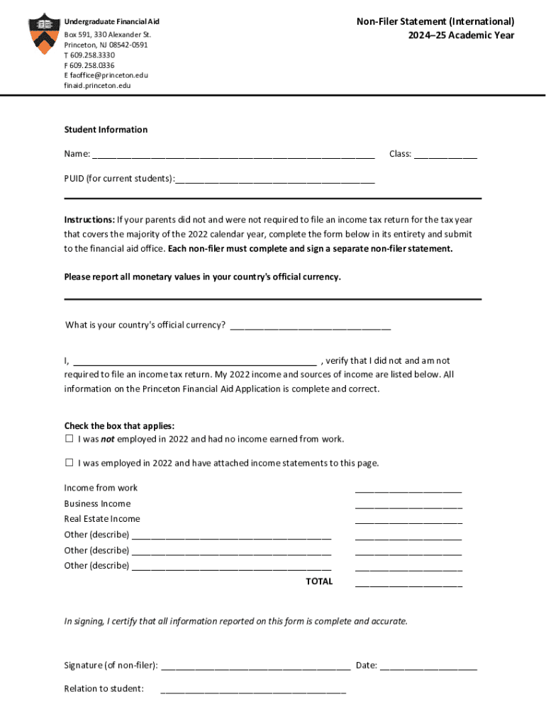 Get the free Non-Filer Statement (International) 202425 Academic Year