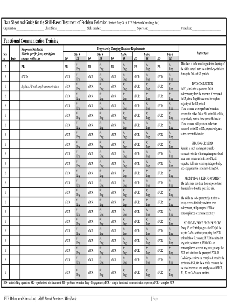 Data Sheet and Guide for the SkillBased Treatment of Problem Behavior (Revised: May 2019; FTF Behavioral Consulting, Inc.)