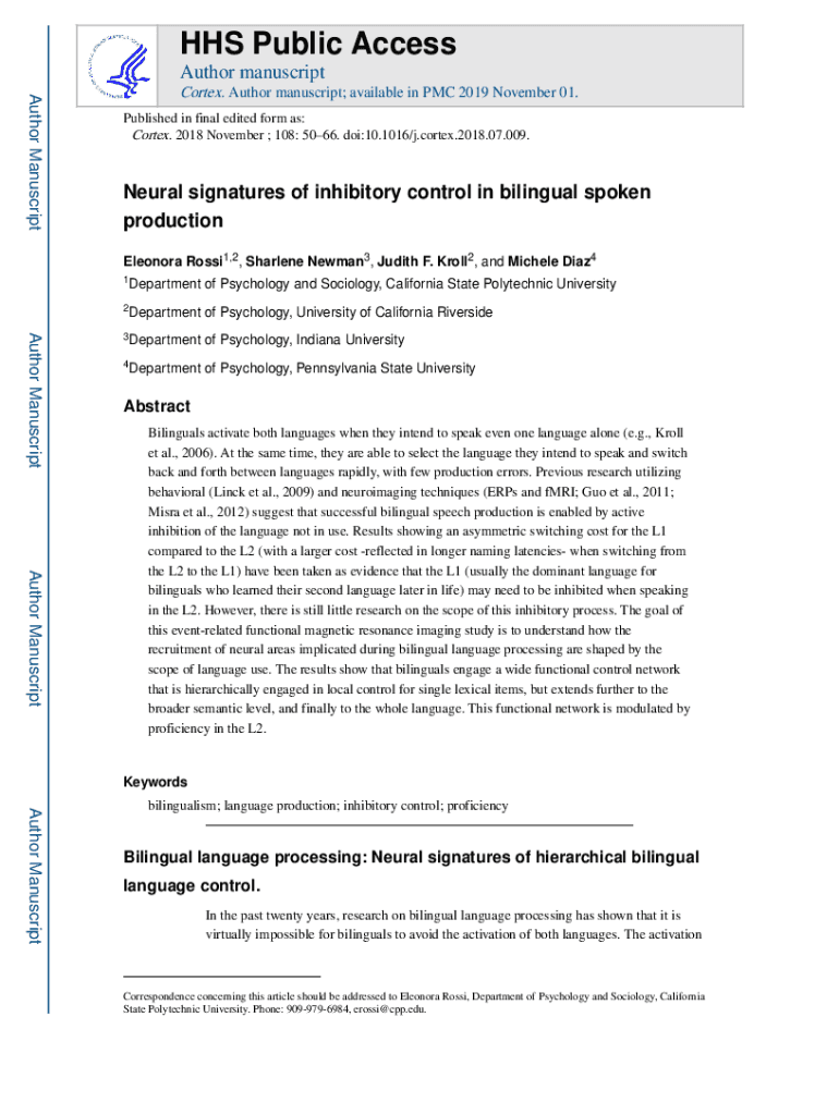 Get the free Neural signatures of inhibitory control in bilingual spoken production