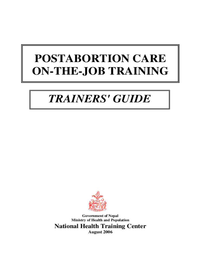 POSTABORTION CARE ONTHEJOB TRAINING TRAINERS\' GUIDEGovernment of Nepal Ministry of Health and PopulationNational Health Training Center August 2006ACKNOWLEDGMENT Maternity Hospital has made an important