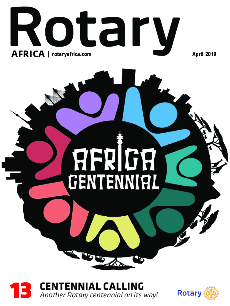 AFRICA | rotaryafrica.com13CENTENNIAL CALLINGAnother Rotary centennial on its way!April 2019MEET OUR TEAM EditorAdministrationSarah van Heerden Sharon RobertsonChairmanGerald Sieberhagen DirectorsGreg