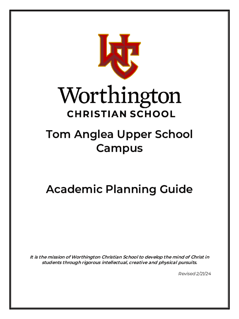 Tom Anglea Upper School Campus Academic Planning GuideIt is the mission of Worthington Christian School to develop the mind of Christ in students through rigorous intellectual, creative and physical