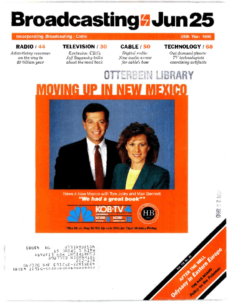 Broadcasting 11Jun25 Incorporating Broadcasting r CableRADIO/44Advertising revenues on the way to $9 billion year59th Year 1990TELEVISION / 30CABLE / 50TECHNOLOGY / 68Exclusive: CBS\'s Jeff Sagansky