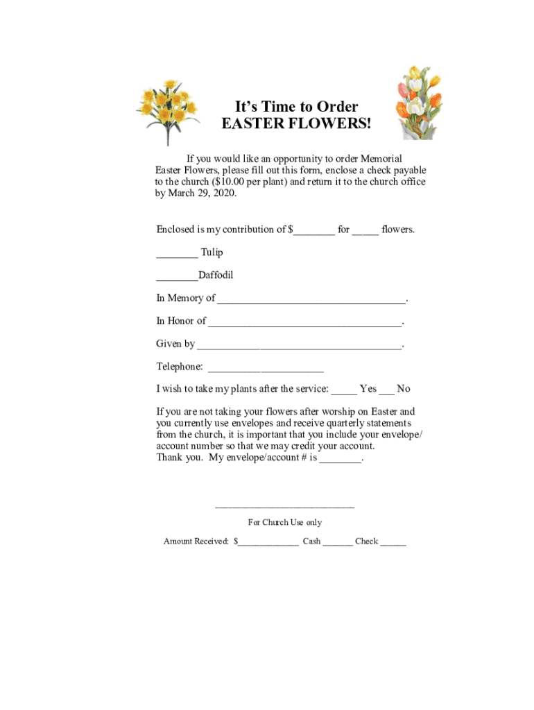 Fill out your easter remembrances- flower order online with pdfFiller!