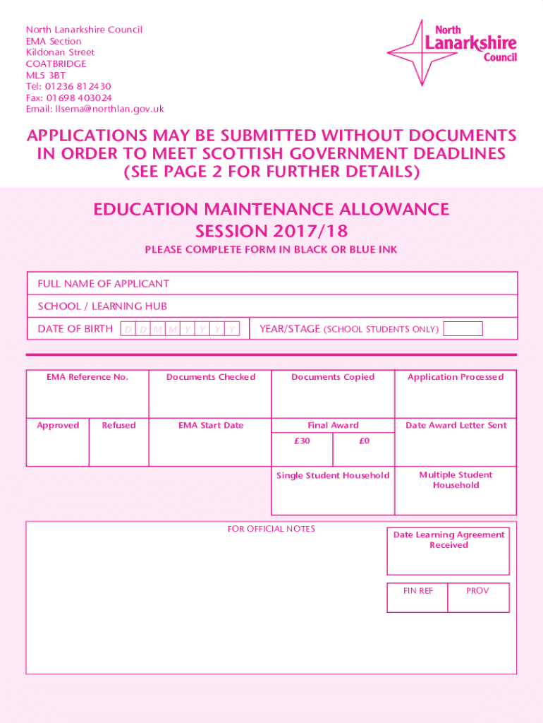 Get the free North Lanarkshire Council - EMA application forms for...