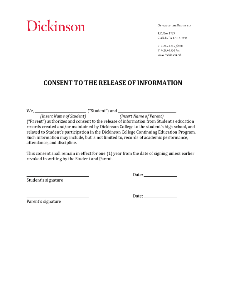 CONSENT TO THE RELEASE OF INFORMATIONWe, ___, (Student) and ___, (Insert Name of Student) (Insert Name of Parent) (Parent) authorizes and consent to the release of information from Students education