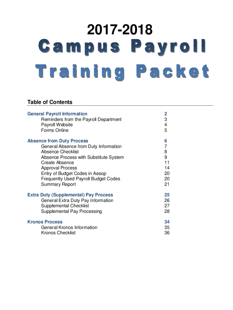 20172018Table of Contents General Payroll Information Reminders from the Payroll Department Payroll Website Forms Online2 3 4 5Absence from Duty Process General Absence from Duty Information Absence