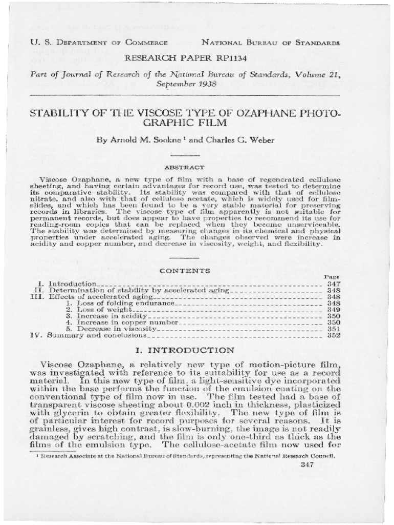 Get the free Stability of the viscose type of ozaphane photographic film - nvlpubs nist