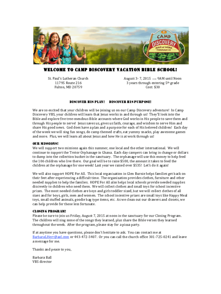 WELCOME TO CAMP DISCOVERY VACATION BIBLE SCHOOL!