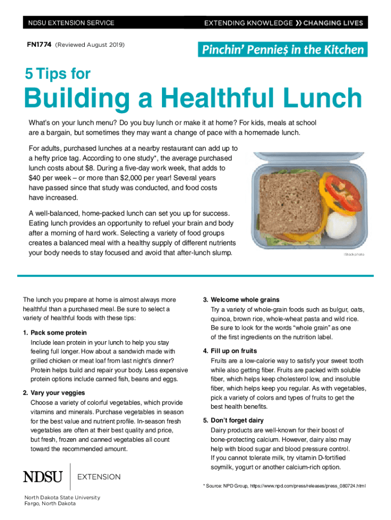 NDSU NDSU EXTENSION EXTENSION SERVICE SERVICEFN1774(Reviewed August 2019)5 Tips forBuilding a Healthful Lunch Whats on your lunch menu? Do you buy lunch or make it at home? For kids, meals at school