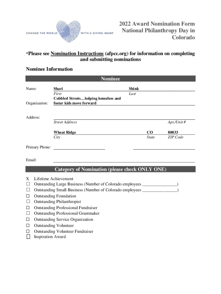 There is no specific form to fill out for National Philanthropy Day, as it is a day of recognition and celebration rather than a regulatory event.