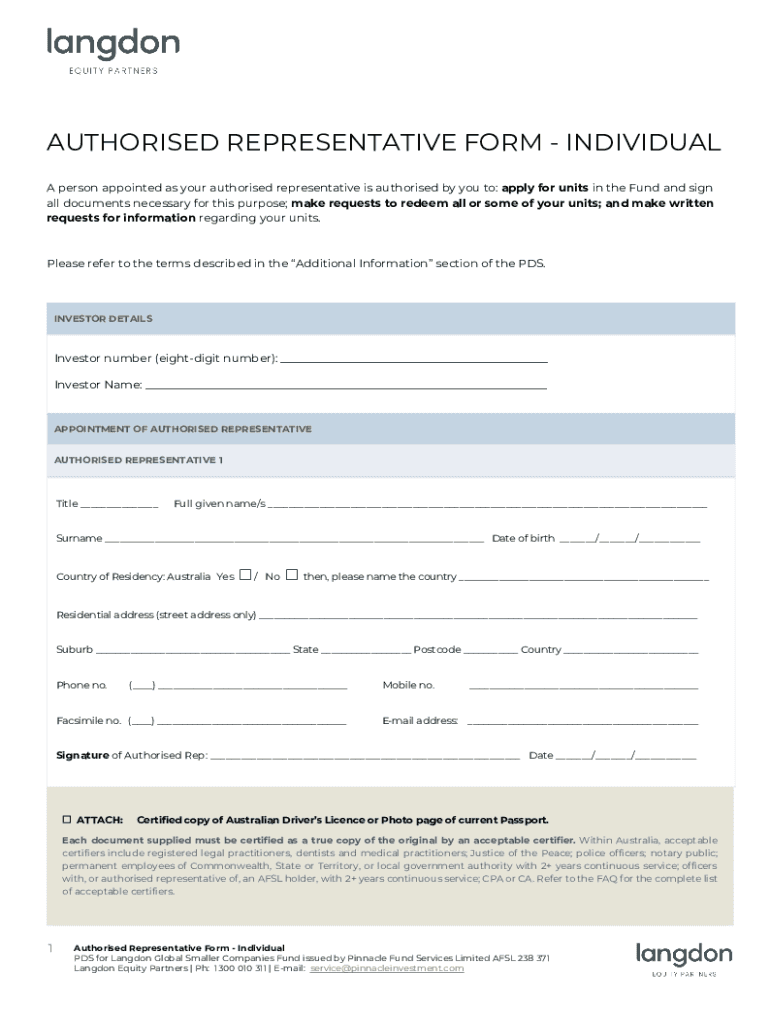 Authorized REPRESENTATIVE FORM INDIVIDUAL