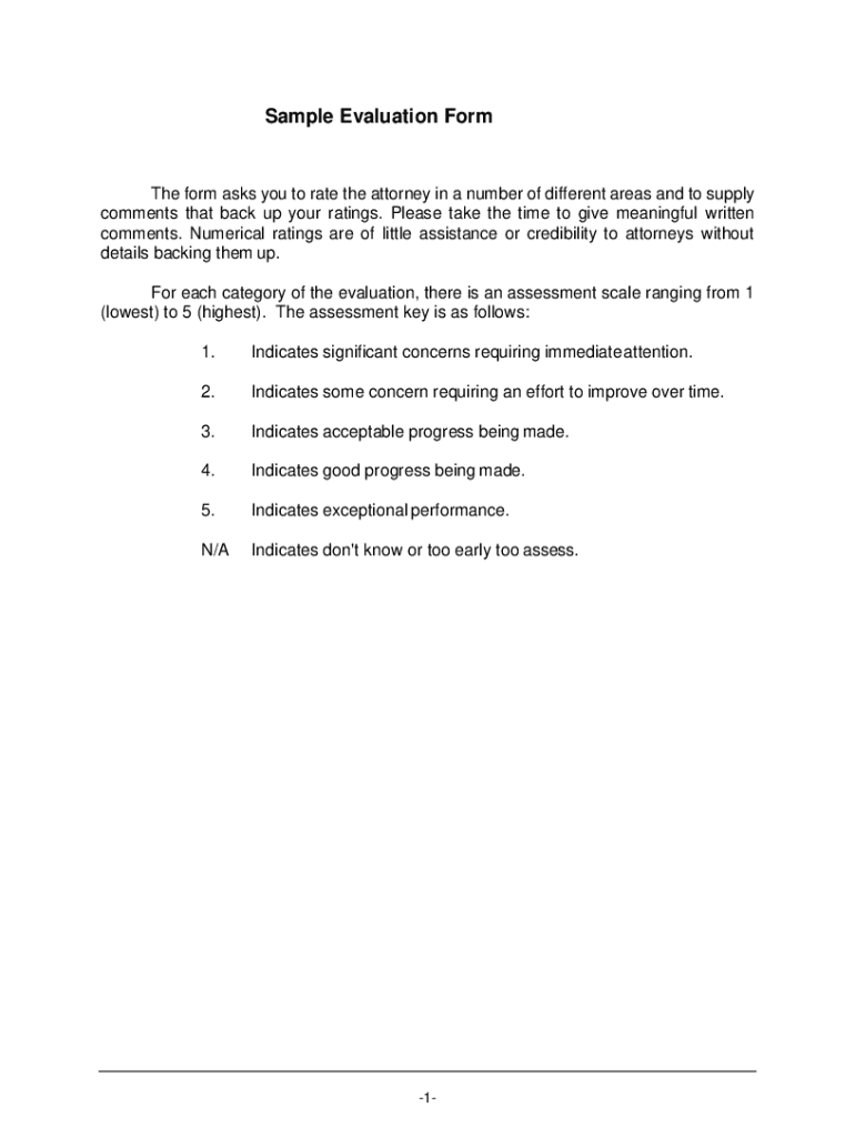 Sample Evaluation Forth form asks you to rate the attorney in a number of different areas and to supply