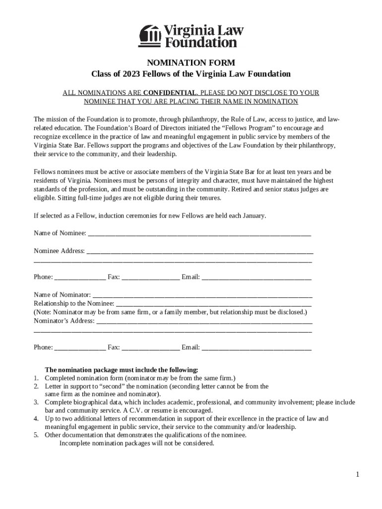 The NOMINATION : Fellow of the Association 2023 is a writable document required to be submitted to the relevant address in order to provide some info. It must be filled-out and signed, which is possible manually, or with a particular software such as PDFfiller. This tool allows to fill out any PDF or Word document directly in your browser, customize it depending on your needs and put a legally-binding e-signature. Right away after completion, you can send the NOMINATION : Fellow of the Association 2023 to the appropriate person, or multiple recipients via email or fax. The blank is printable too because of PDFfiller feature and options proposed for printing out adjustment. In both electronic and in hard copy, your form should have a organized and professional appearance. You may also turn it into a template to use it later, there's no need to create a new blank form again. Just customize the ready template.