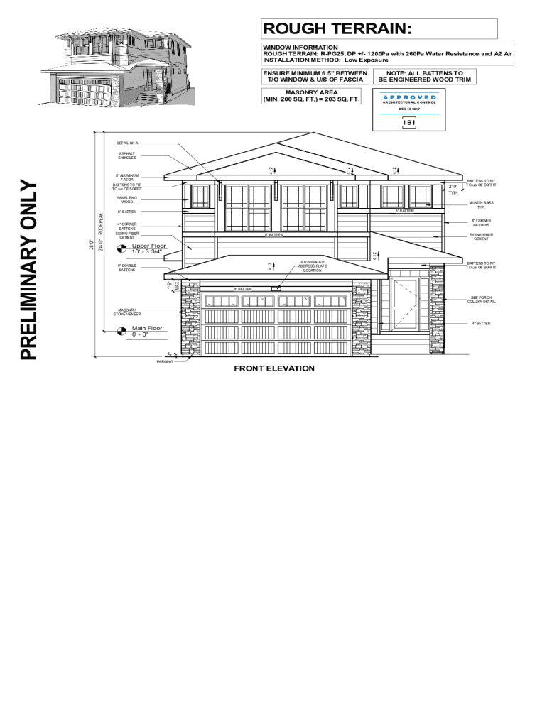 ROUGH TERRAIN: WINDOW INFORMATION ROUGH TERRAIN: RPG25, DP +/ 1200Pa with 260Pa Water Resistance and A2 Air INSTALLATION METHOD: Low Exposure ENSURE MINIMUM 6.5\" BETWEEN T/O WINDOW & U/S OF FASCIANOTE: