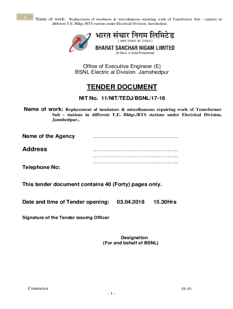 Get the free Name of work: Replacement of insulators & miscellaneous repairing work of Transforme...