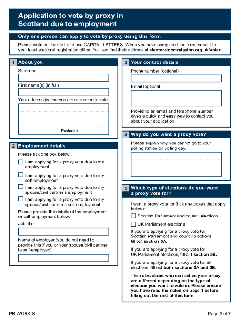 Application to vote by proxy in Scotland due to employment Voting by proxy Proxy voting means that if you cannot vote in person, you can have someone you trust vote on your behalf. You can use this