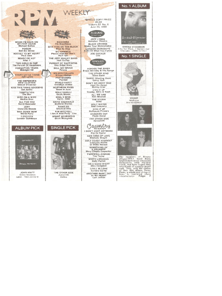 No.1 ALBUMDI Y L.4aWEEKLY SINGLE COPY PRICE $3.00Volume 52 No. 6 June 23, 1990 ALBUMS TO WATCHWHEN I\'M BACK ON MY FEET AGAIN Michael Bolton POISONMADONNAJEFF LYNNE Armchair TheatreI\'m Breathless