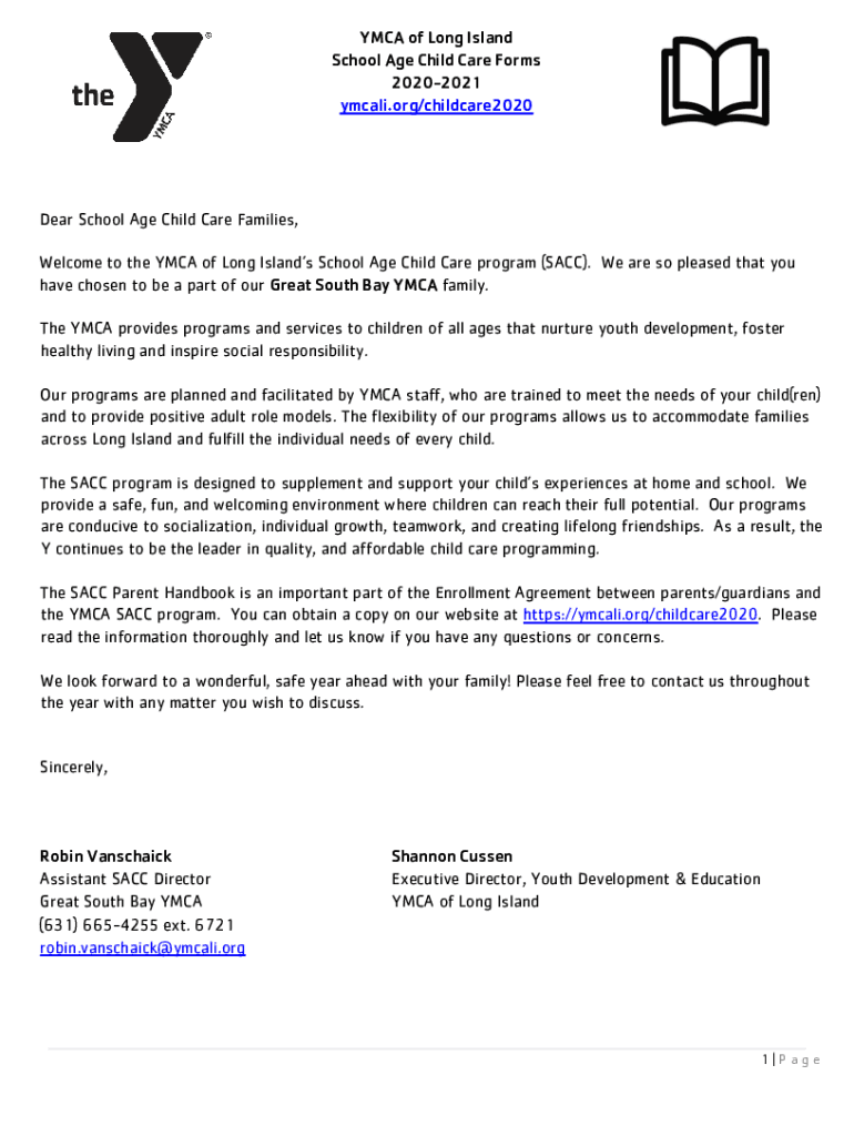 YMCA of Long Island School Age Child Care Forms 20202021 ymcali.org/childcare2020Dear School Age Child Care Families, Welcome to the YMCA of Long Islands School Age Child Care program (SACC). We are