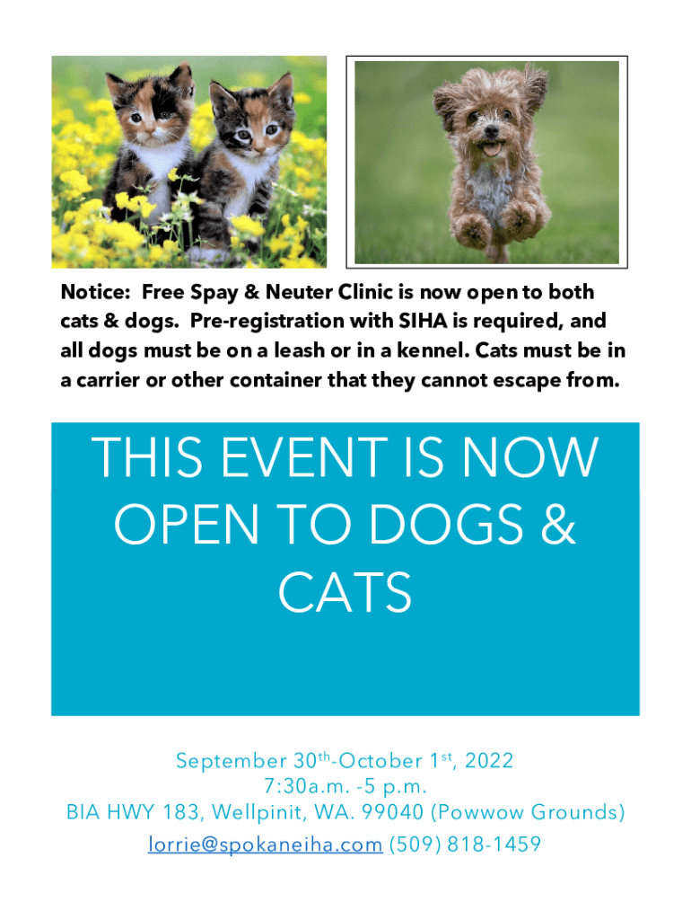Notice: Free Spay & Neuter Clinic is now open to both cats & dogs. Preregistration with SIHA is required, and all dogs must be on a leash or in a kennel. Cats must be in a carrier or other container