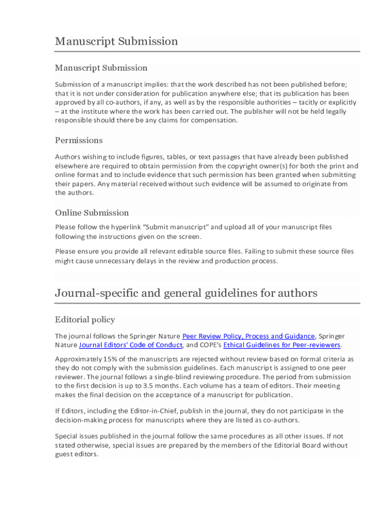 Get the free I submitted my manuscript to a Springer journal. The status ...