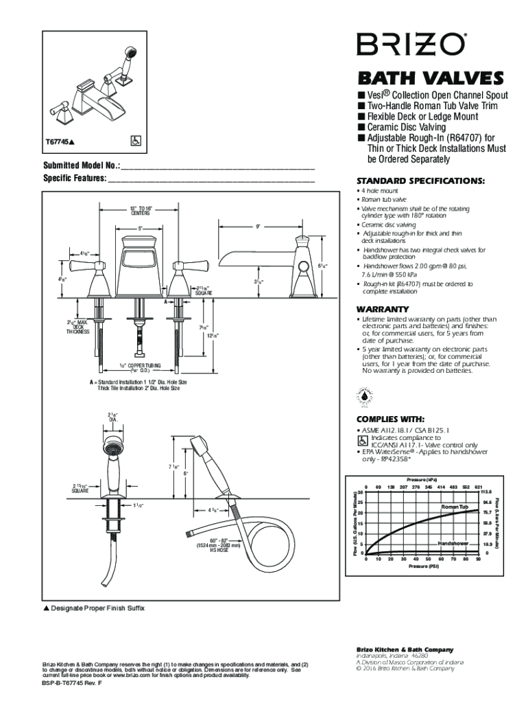 BATH VALVES Vesi Collection Open Channel Spout TwoHandle Roman Tub Valve Trim Flexible Deck or Ledge Mount Ceramic Disc Valving Adjustable RoughIn (R64707) for Thin or Thick Deck Installations Must