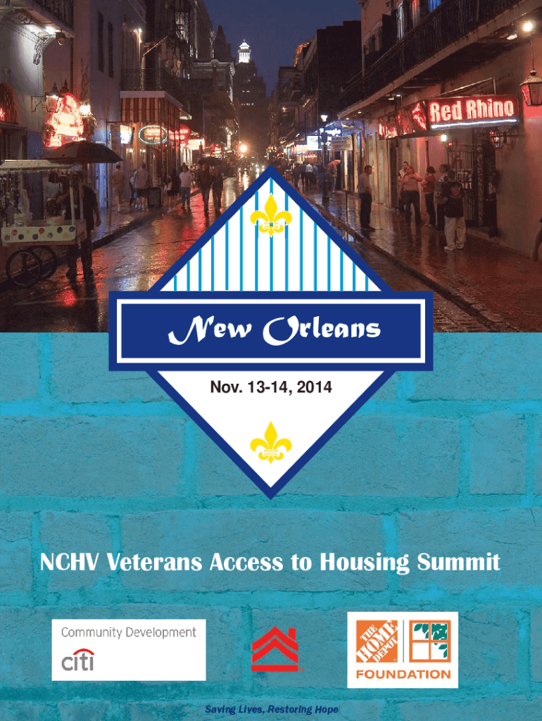 New Orleans Nov. 1314, 2014NCHV Veterans Access to Housing SummitSaving Lives, Restoring HopeJoin Us The 2014 NCHV Veterans Access to Housing Summit will take place Nov. 1314 at the Hyatt Regency
