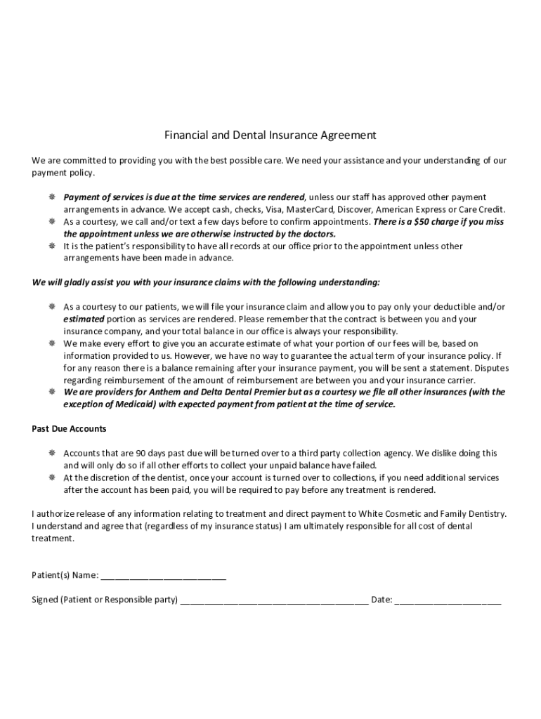 Get the free Financial and Dental Insurance Agreement.doc