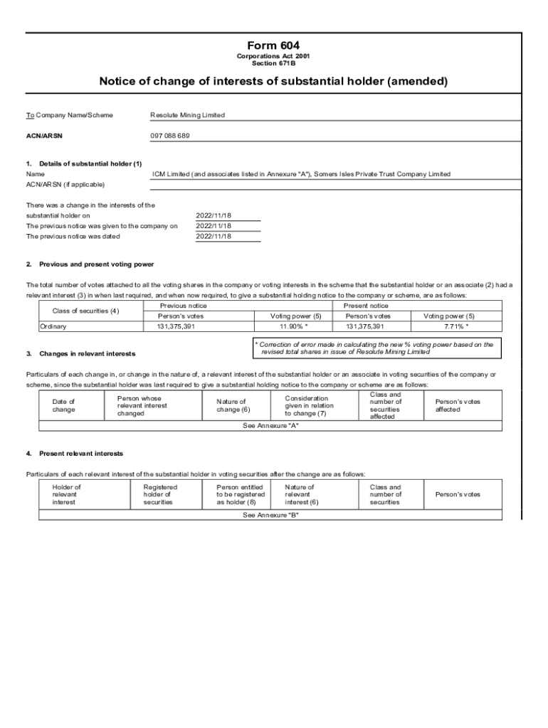 Get the free Notice of change of interests of substantial holder (amended)