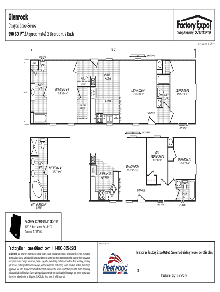 990 SQ. FT. (Approximate) 2 Bedroom, 2 BathCANYON LAKELast Updated: 11232266\'0\"