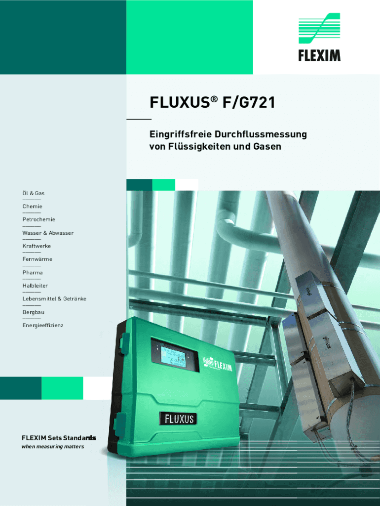 FLUXUS F/G721 Eingriffsfreie Durchflussmessung von Flssigkeiten und Gasenl & Gas ___ Chemie ___ Petrochemie ___ Wasser & Abwasser ___ Kraftwerke ___ Fernwrme ___ Pharma ___ Halbleiter ___ Lebensmittel