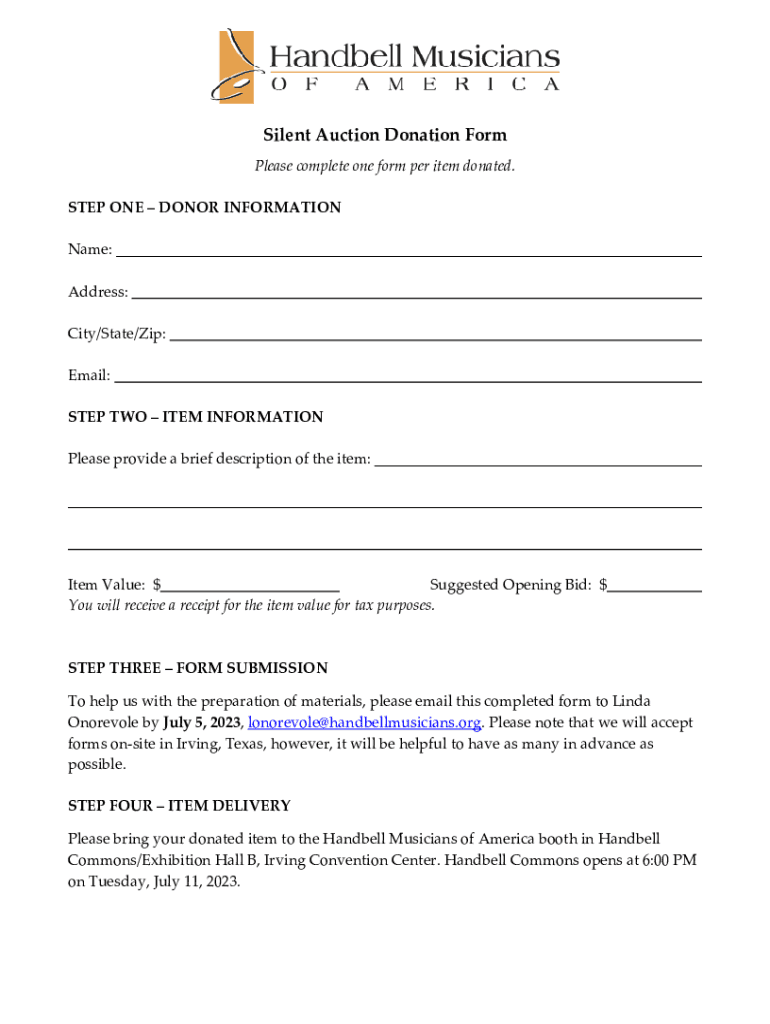 Get the free Please complete one form per item donated - seminar handbellmusicians