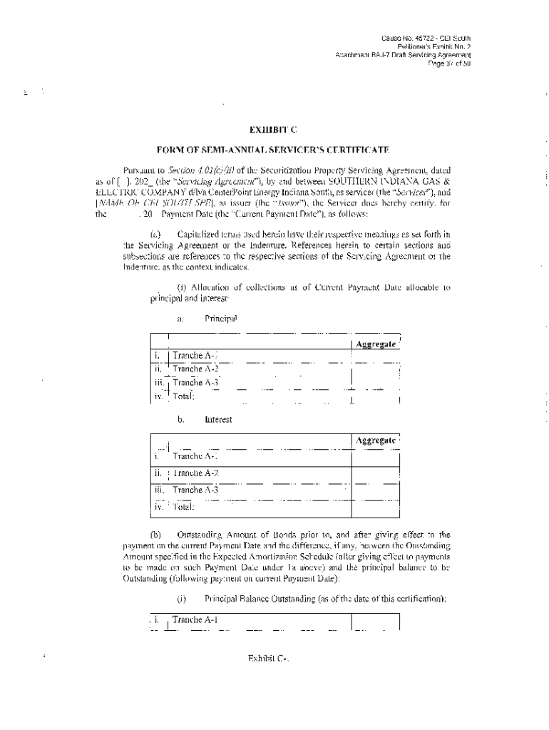 Cause No. 45722 CEI South Petitioner\'s Exhibit No. 2 Attachment BAJ7 Draft Servicing Agreement Page 37 of 50EXHIBIT C FORM OF SEMIANNUAL SERVICER\'S CERTIFICATE Pursuant to Section 4. OJ (c) (ji)