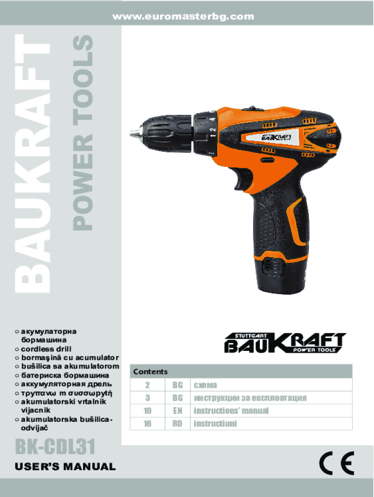 POWER TOOLSBAUKRAFTwww.euromasterbg.com cordless drill bormain cu acumulator builica sa akumulatorom y m pyt akumulatorski vrtalnik vijacnik akumulatorska builicaodvijaBKCDL31USERS MANUALContents