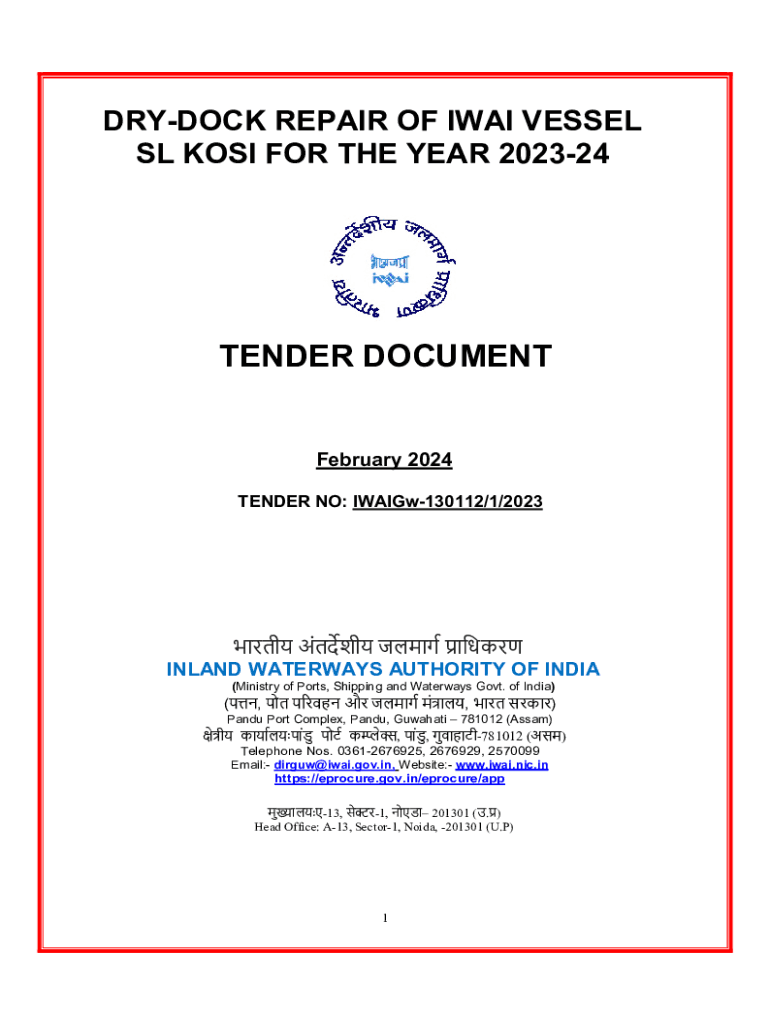 Dry-dock repair of IWAI (Inland Waterways Authority of India) refers to the process of inspecting, maintaining, and repairing the ships and vessels owned or operated by IWAI while they are docked out of water.